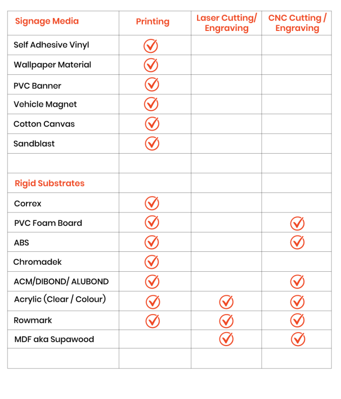 To help you choose the correct material, here are a list of our substrates and how they can be utilised: