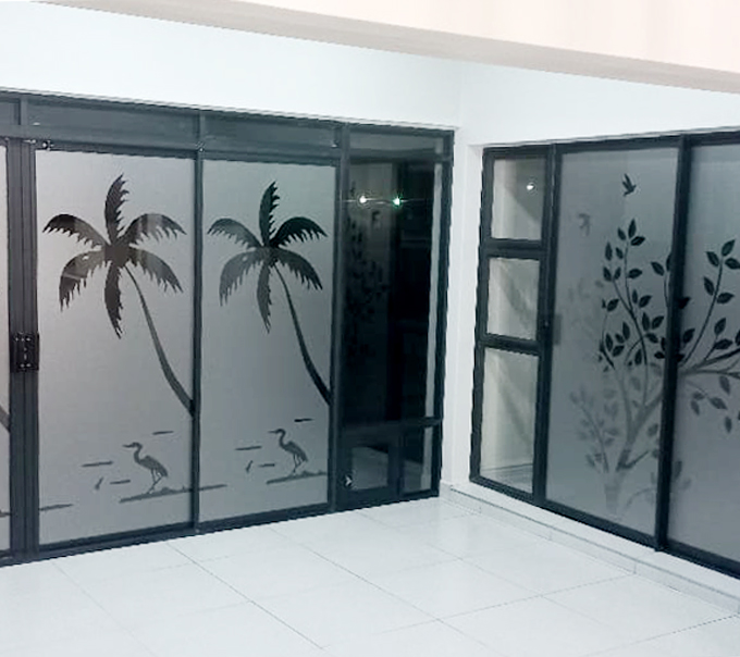 Common uses: include office partitions, shopfronts, bathrooms, boardrooms, and decorative glass panels where privacy, branding, and a refined aesthetic are required.